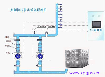 XPBK型變頻壓供水設(shè)備采用的變頻技術(shù),采用原裝進(jìn)口ABB變頻器,通過可編程序控制器對單臺或多臺水泵進(jìn)行轉(zhuǎn)速調(diào)節(jié)和臺數(shù)調(diào)節(jié),變頻器自身具有欠壓、過壓、缺相、過流、過載、短路、過熱、失速防止等保 護(hù)功能,可長時間運行確保無故障。設(shè)備配電控制部分,采用智能化控制原理,操作方便實用,設(shè)備工作狀況一目了然,便于非專業(yè)人員很快熟練掌握。我公司生產(chǎn)的恒壓變頻供水設(shè)備是保護(hù)功能齊全,運行安全可靠,操作方便的理想給水設(shè)備系統(tǒng)。。實現(xiàn)恒壓變量供水的閉環(huán)調(diào)節(jié),使供水系統(tǒng)達(dá)到合理、經(jīng)濟(jì)的運行效果,同時實現(xiàn)了操作的自動化。產(chǎn)品結(jié)構(gòu)緊功能齊全、占地面積小。取代了傳統(tǒng)的老式供水方式等供水裝置,節(jié)約了工程投資,縮短了工程周期,避免了水質(zhì)二次污染,該設(shè)備是一種新型的節(jié)能、環(huán)保型的供水設(shè)備。 變頻恒壓給水設(shè)備主要組成部份: 主要由變頻控制柜、壓力傳感器、水泵、隔膜式氣壓罐、配套管道閥門、機(jī)座等組成,其中變頻控制柜由斷路器、變頻器、接觸器、中間繼電器、PLC、觸摸屏等組成。